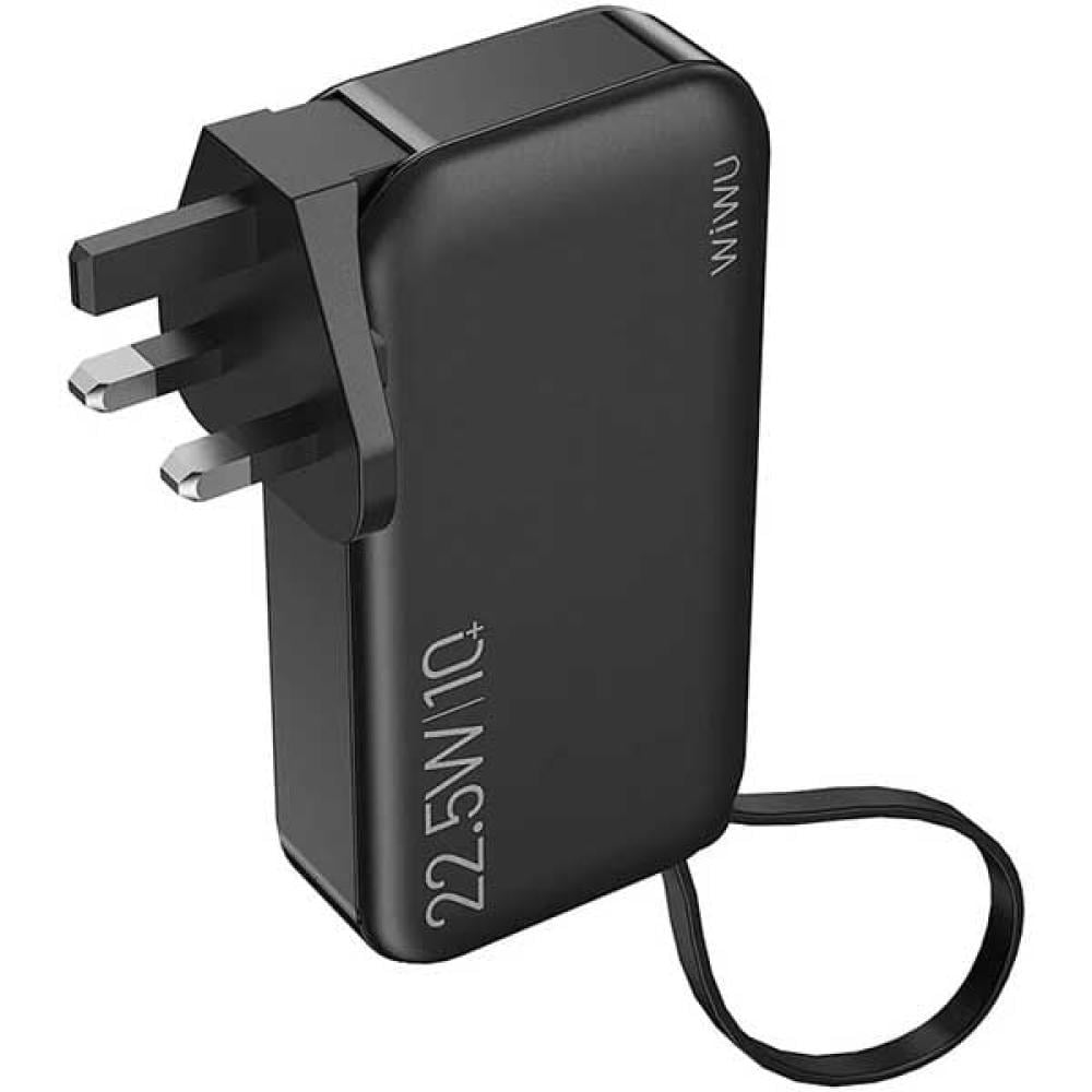 شاحن متنقل باور بانك 10,000mAh - شحن سريع - 3 منافذ - كيابل مدمجة - أسود