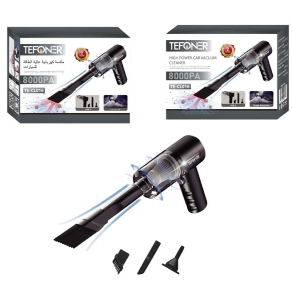 TEFONER المحمولة (CL016)، المصممة خصيصًا لتوفير قوة شفط استثنائية في تصميم مدمج ومريح. هذه المكنسة المتعددة الاستخدامات هي الحل الأمثل للحفاظ على نظافة سيارتك ومنزلك بكل سهولة وفعالية.